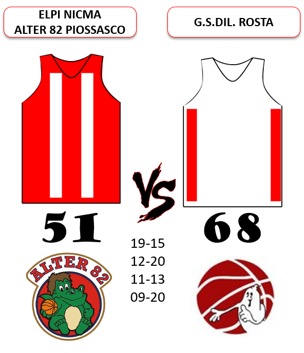E’ migliore l’approccio alla gara per i ragazzi di Piossasco che nel primo quarto riescono a prendere un buon vantaggio che viene però limitato verso la fine del quarto dal recupero del Rosta (19-15). Ancora sostanziale equilibrio e pareggio dei valori in campo anche nel secondo e terzo quarto che però sono sempre a vantaggio del Rosta che allunga il divario. Nell’ultimo quarto i ragazzi di Piossasco calano un po’ la concentrazione e sono costretti a ricorrere spesso al fallo (quattro ragazzi raggiungono i 5 falli) e così il Rosta dilaga (20-9). I nostri avversari hanno di certo capitalizzato al meglio le occasioni che si sono create vincendo meritatamente la partita.